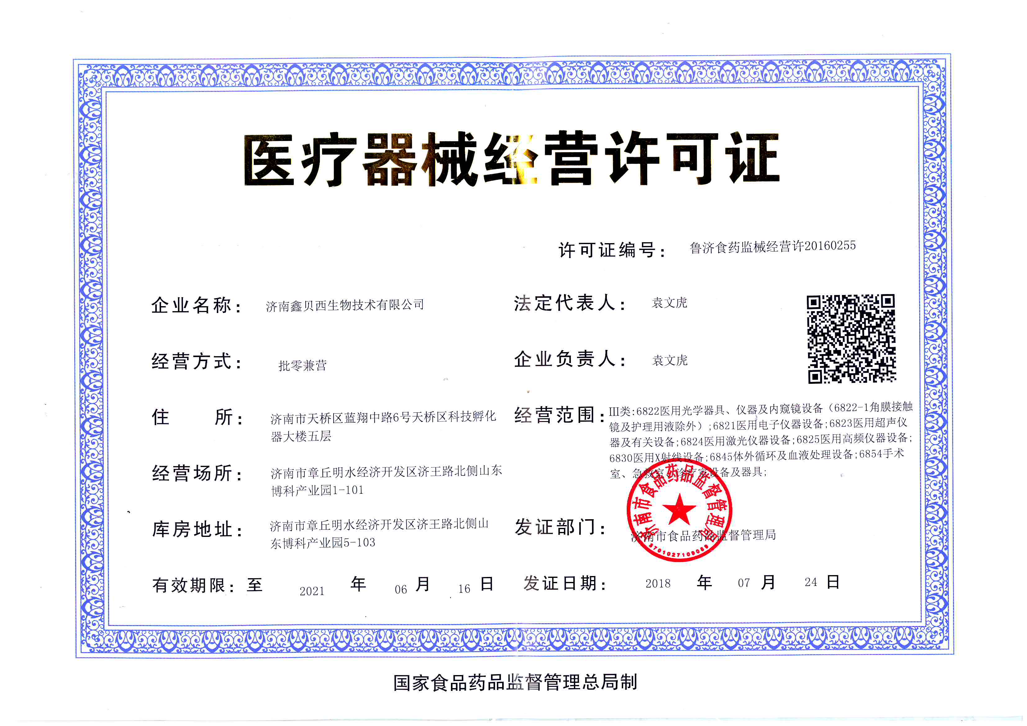 熱烈祝賀鑫貝西公司醫療器械經營許可證變更成功
