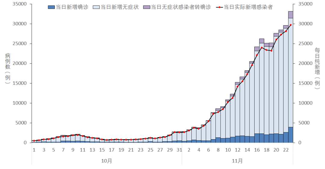 31個?。ㄗ灾螀^、直轄市)和新疆生產建設兵團報告新增無癥狀感染者29840例,其中境外輸入186例,本土29654例;