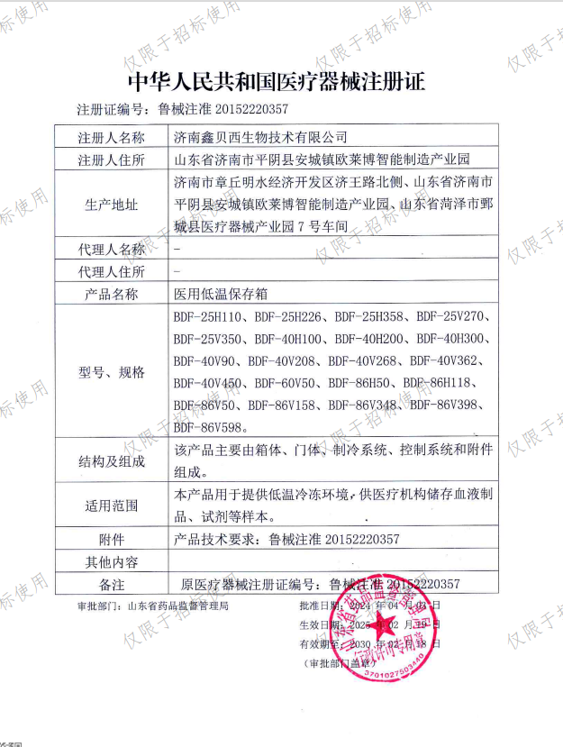 所屬類目:屬于醫療器械產品 II類 6858 醫用冷療、低溫、冷藏設備及器具
