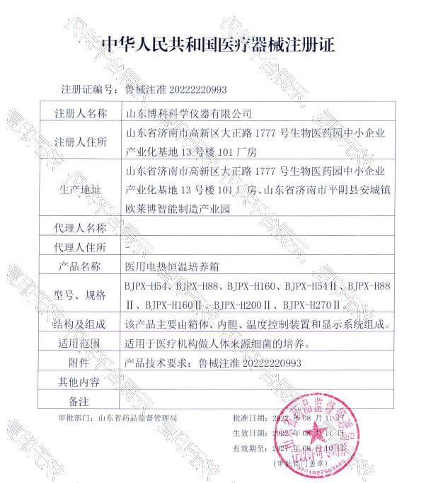 溫度上限:85℃所屬類目:二類6841醫用化驗和基礎設備器具批準文號:魯械注準20222220993